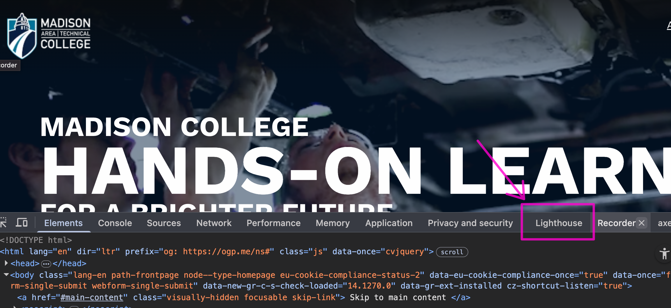 In the Developer Tools panel, choose the Lighthouse tab